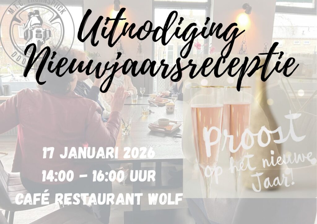Start de motoren (of gewoon je goede humeur), want op zaterdag 17 januari 2026 om 14:00 uur klinken wij samen het nieuwe jaar in tijdens onze knallende Nieuwjaarsrecptie.